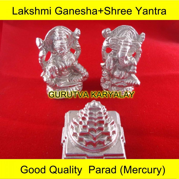 Mantra Siddh Parad Lakshmi Ganesha+Shree Yantra BEST Mercury Statue 125 Gram